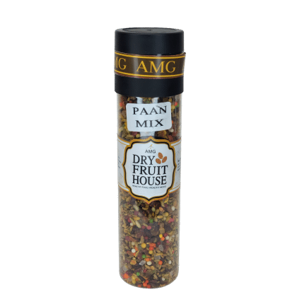 AMG Paan Mix is a delightful blend of betel leaves, fennel seeds, sweeteners, and aromatic spices. A perfect mouth freshener to enjoy after meals, offering a burst of authentic paan taste in every bite.